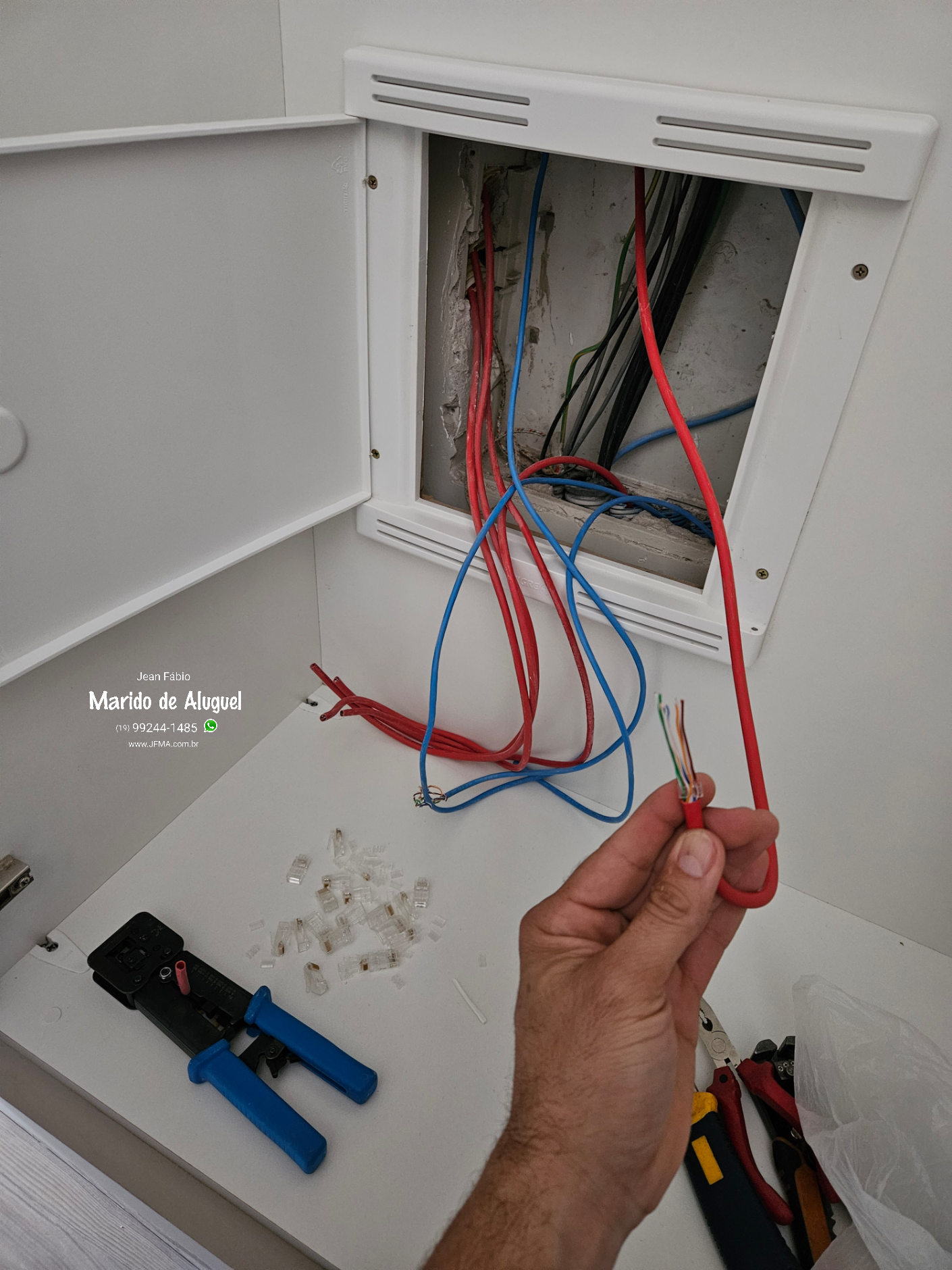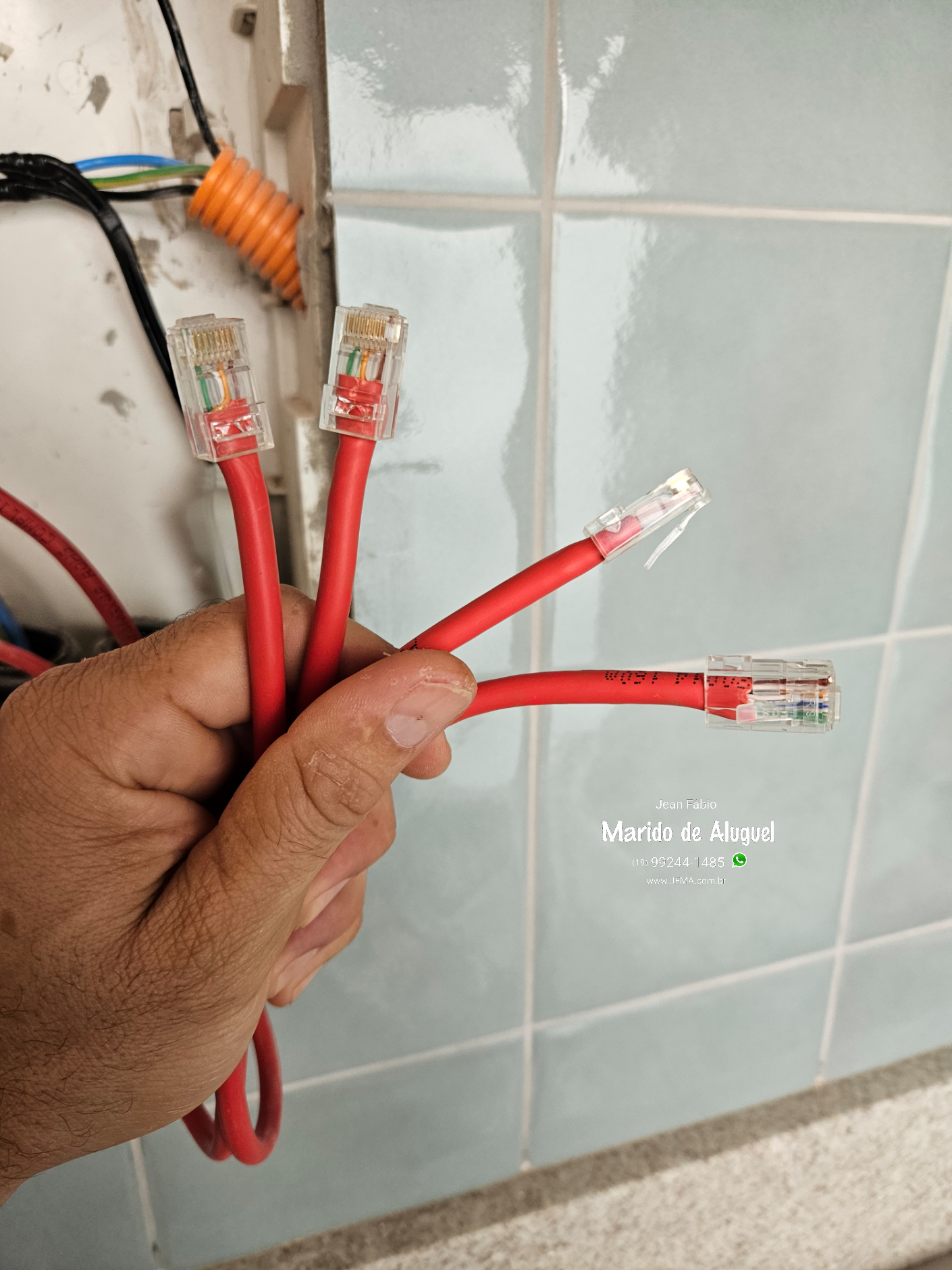 Crimpagem de cabo de rede, tomada, modem (Depois, pavimento superior)