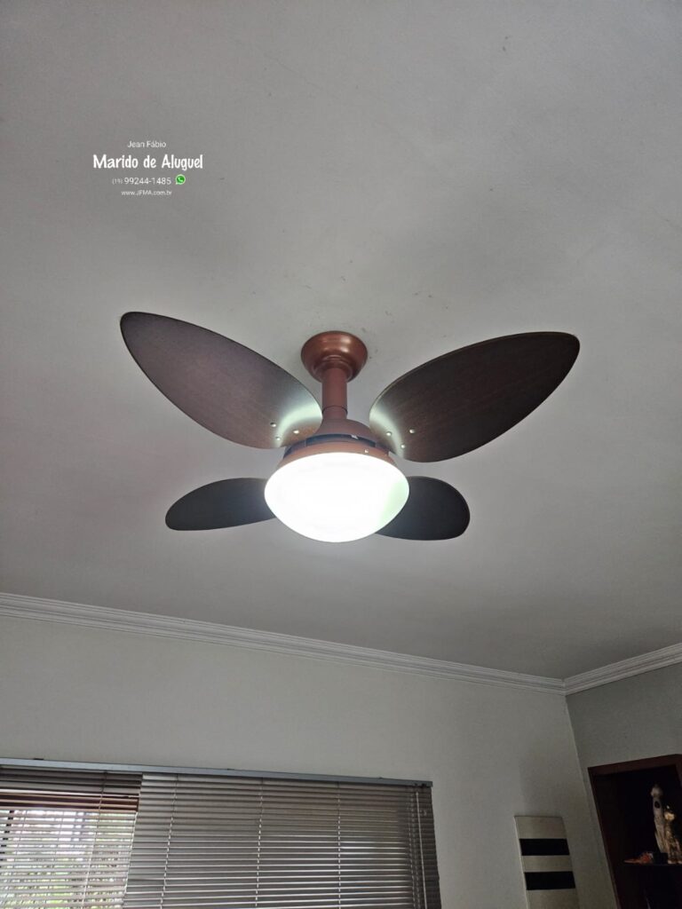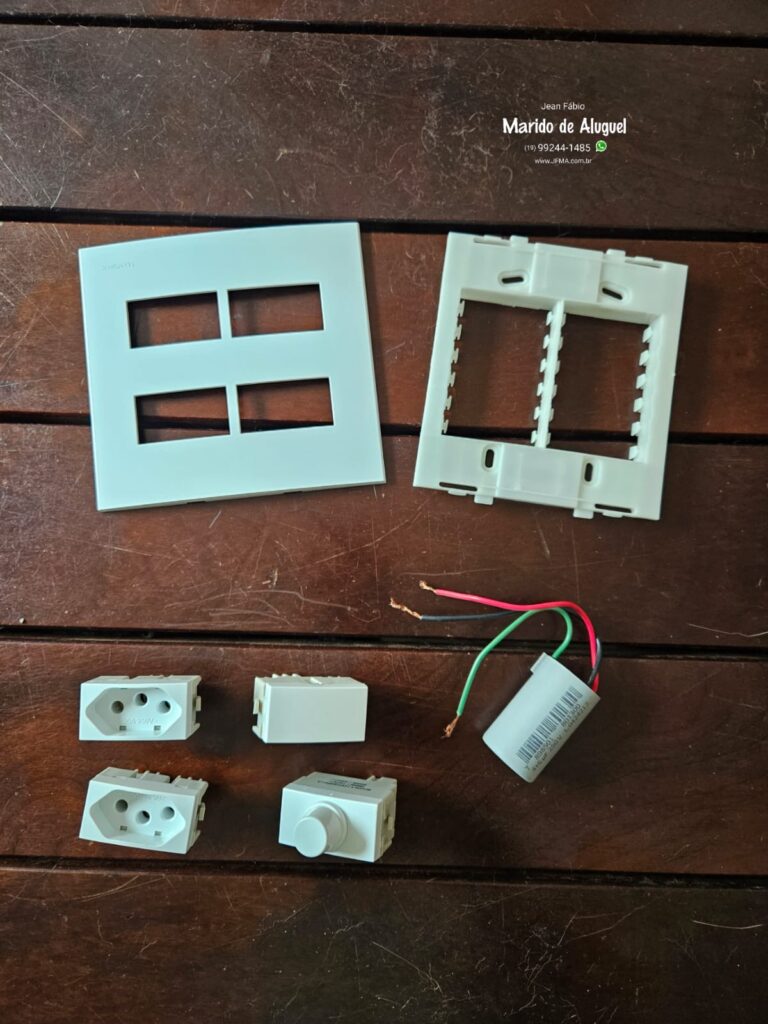 Nessa casa o ventilador já estava instalado, mas a caixinha onde ficava o comando estava toda danificada… fios bagunçados, estrutura quebrada e nada funcionando do jeito certo.