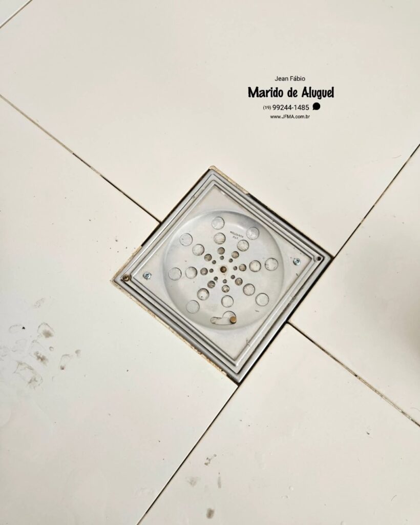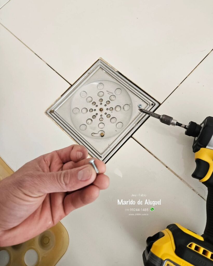 Fui até a casa da cliente para resolver um problema no ralo do banheiro. Ele é totalmente de inox, e não estava quebrado. Mas o parafuso qur segura a tampa oxidou e acabou quebrando, fazendo que a mesma ficasse solta.