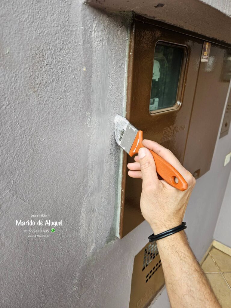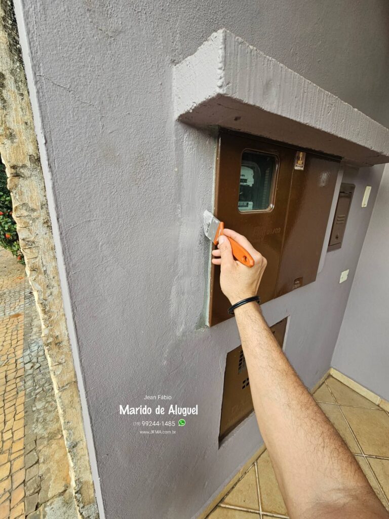 A cliente me chamou porque o reboco da parede, perto do quadro de força, estava quebrado e com aparência desgastada.
