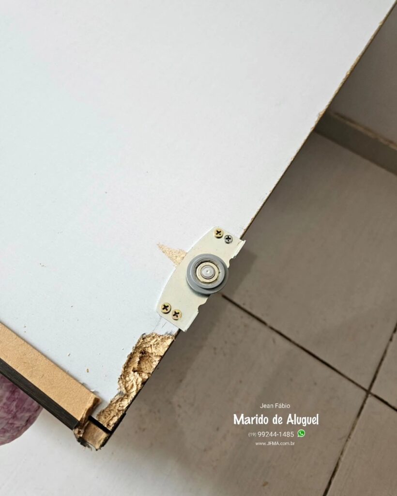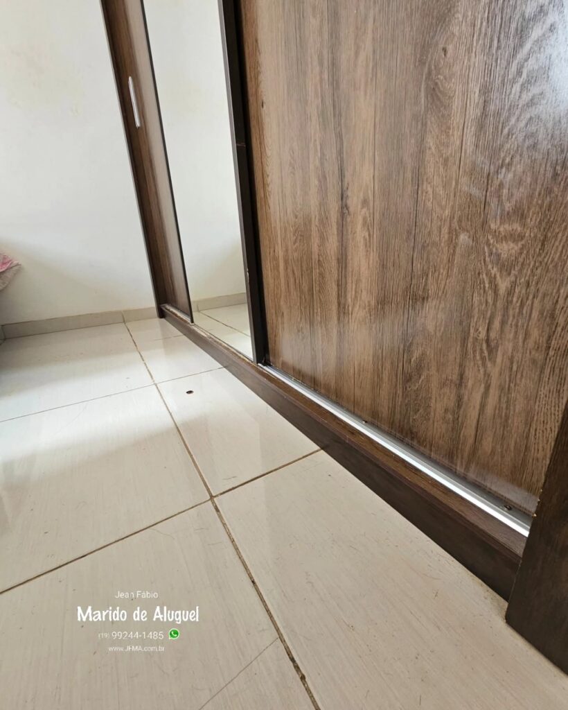 Nesse atendimento, a cliente me chamou para verificar a porta do guarda-roupa, que não estava correndo direito e ainda estava soltando, com risco de cair. Ao analisar o problema, identifiquei duas causas principais. A primeira era que a madeira na área da rodinha estava danificada, porém a rodinha em si estava em bom estado. Então, fiz a refixação da rodinha em outro ponto da porta, onde a madeira ainda estava firme, garantindo uma fixação segura e resistente. O segundo problema era o trilho, que estava torto, amassado e comprometendo totalmente o deslizamento da porta. A cliente providenciou um trilho novo, e eu realizei a substituição completa, ajustando corretamente o alinhamento. Com o trilho novo instalado e a rodinha bem fixada, reposicionei a porta no lugar e deixei o guarda-roupa funcionando perfeitamente novamente, com deslizamento suave, segurança e acabamento caprichado. ✅