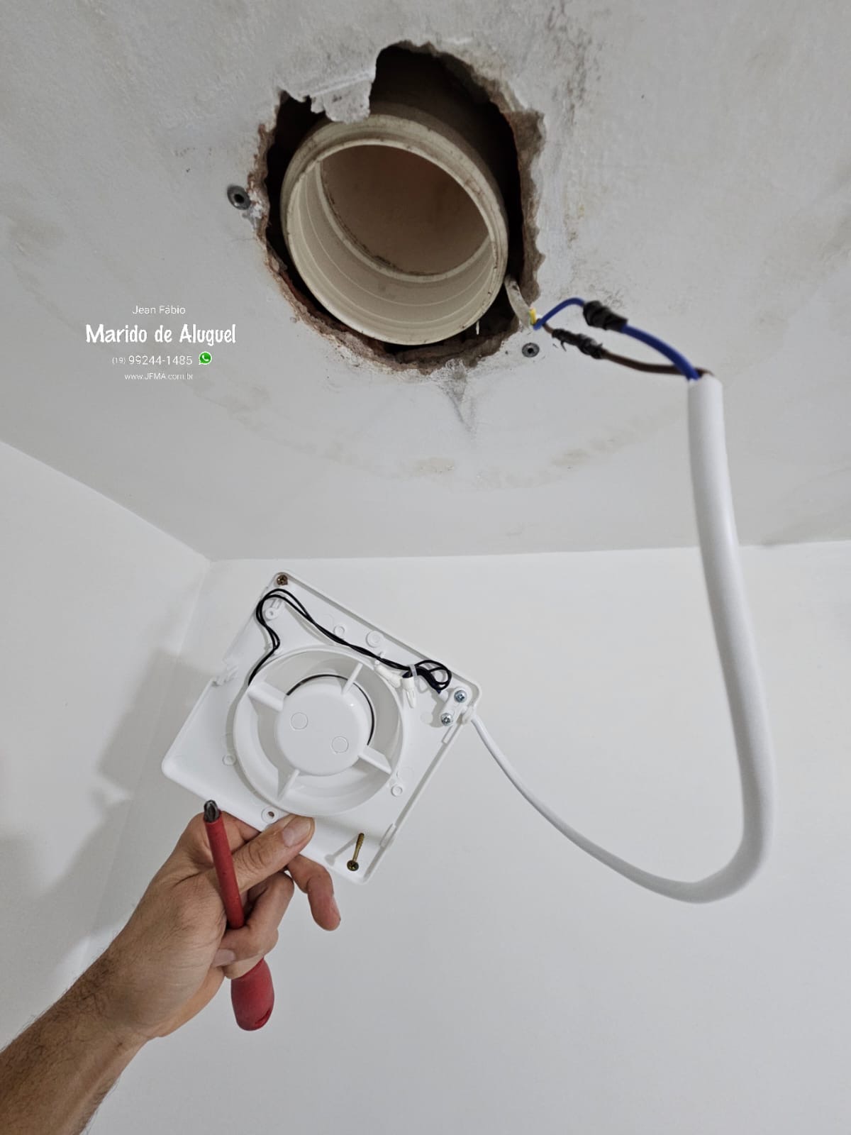 Instalei o novo exaustor, fiz as conexões necessárias e testei o funcionamento para garantir que tudo estivesse operando corretamente.