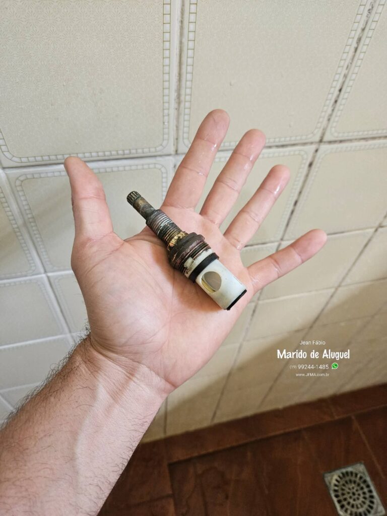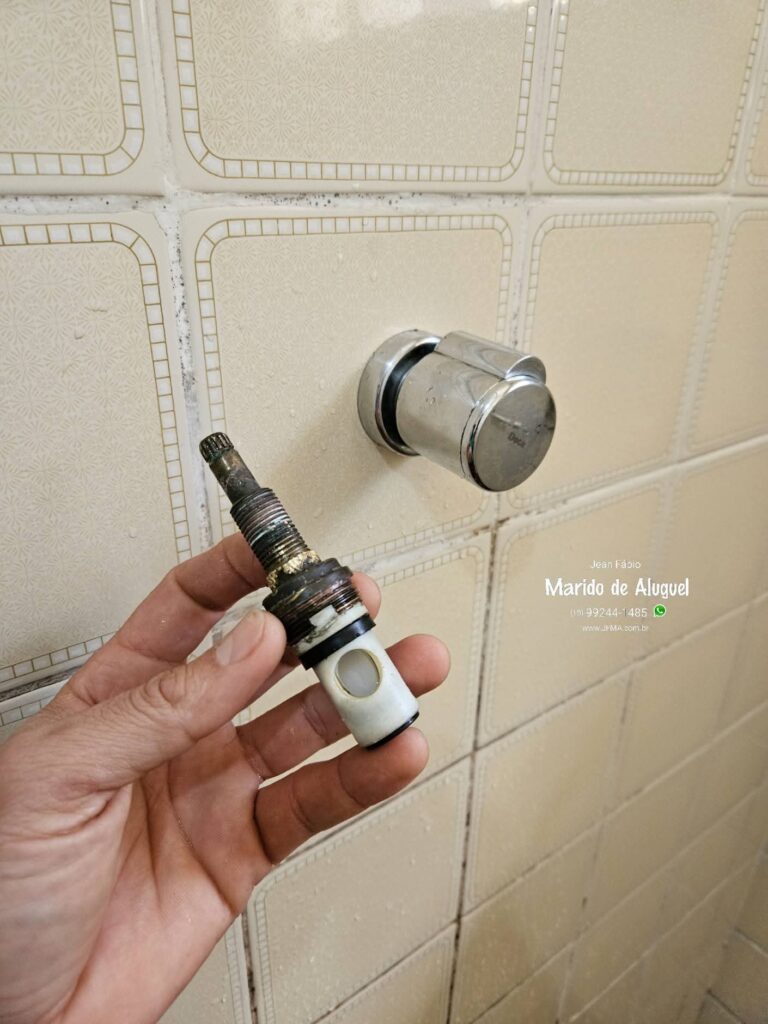 O cliente me chamou porque o chuveiro continuava pingando mesmo depois de fechar o registro, indicando falha na vedação. Ao desmontar o registro, identifiquei que se tratava de um modelo 1/4 de volta específico da marca Deca.