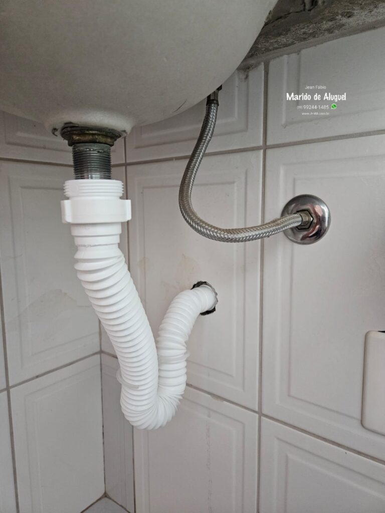 Expliquei a situação pra cliente e realizei a substituição completa do sifão, utilizando uma peça nova e adequada para garantir o funcionamento correto.