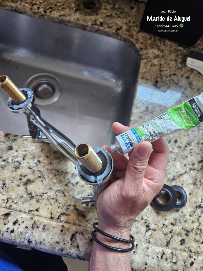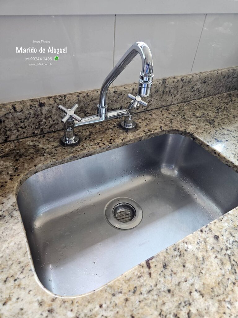 Removi a torneira antiga, fiz a instalação da nova com acabamento em silicone para vedação completa e troquei os engates, garantindo mais segurança e prevenindo qualquer risco de vazamento.