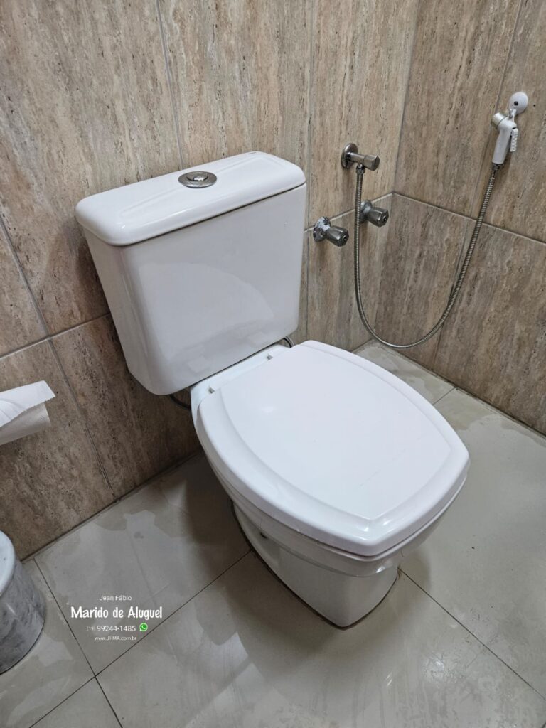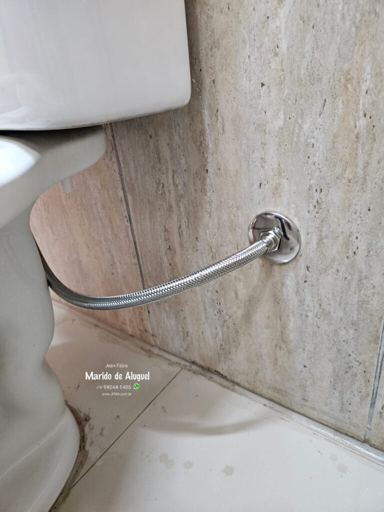 Em seguida, instalei o kit completo novo, além de substituir o engate e a mangueirinha, deixando todo o sistema renovado e mais seguro. Depois disso, fiz os ajustes necessários pra garantir o nível correto da água e o funcionamento perfeito da descarga.