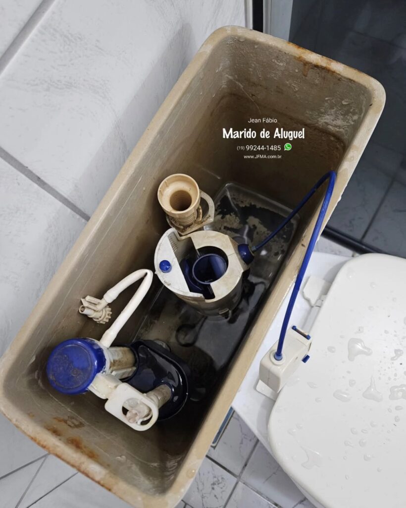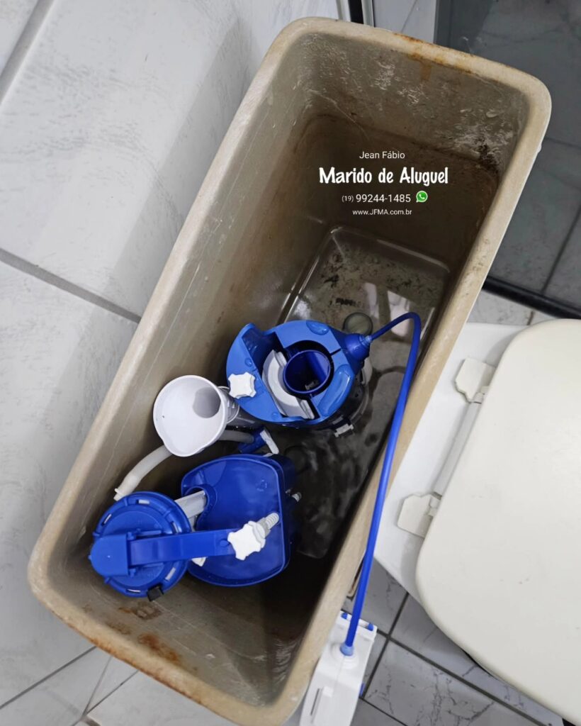 Para resolver de forma definitiva, fiz a troca completa do kit de descarga da caixa acoplada, substituindo todas as peças internas.