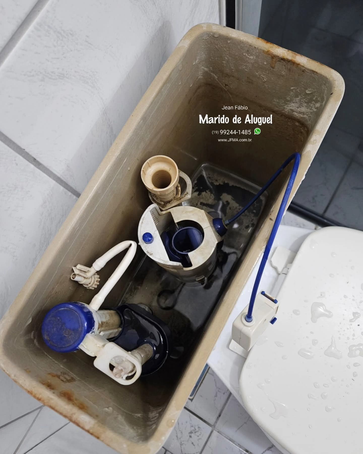 Nesse serviço, o problema era que a descarga ficava disparando, não parava de liberar água.