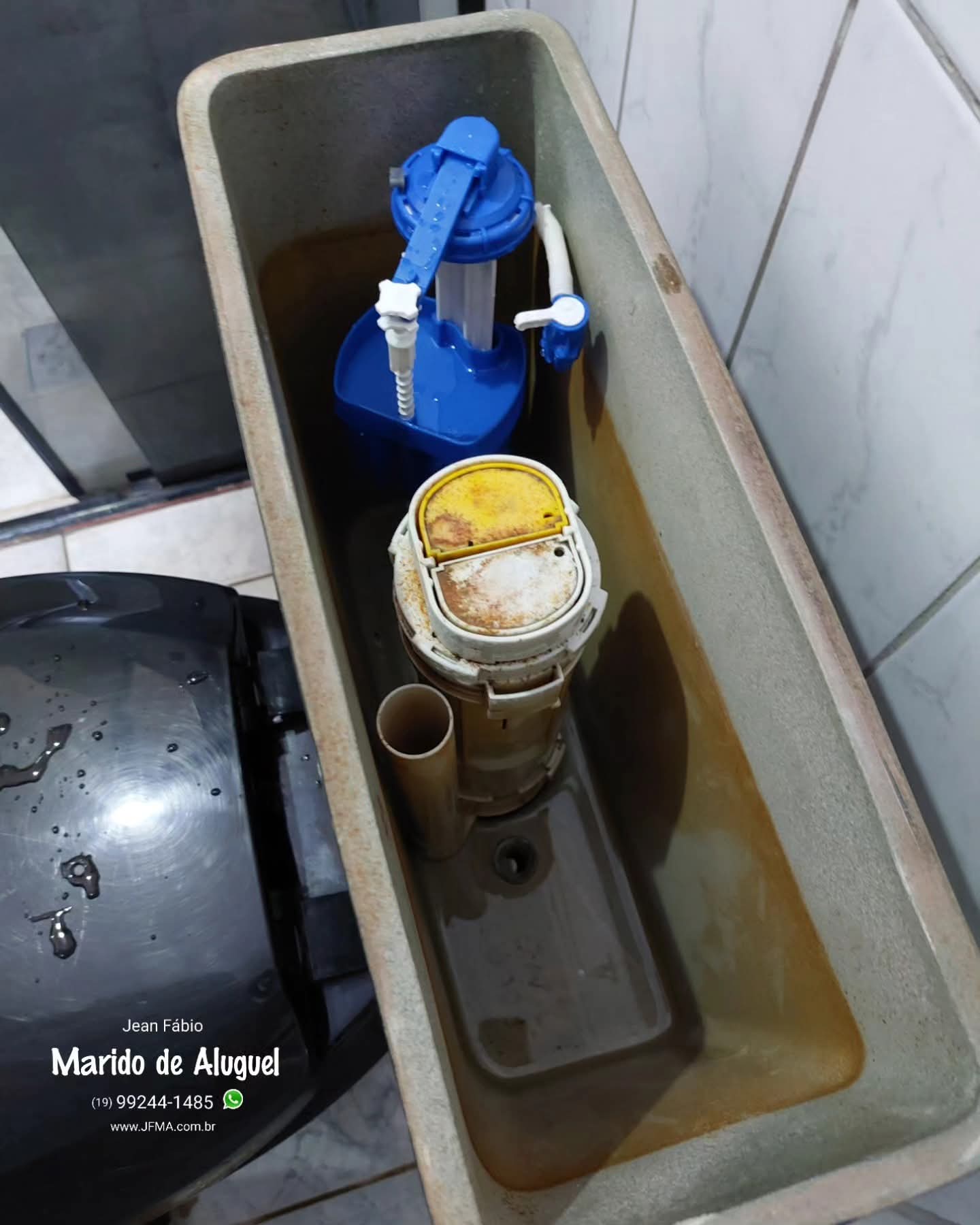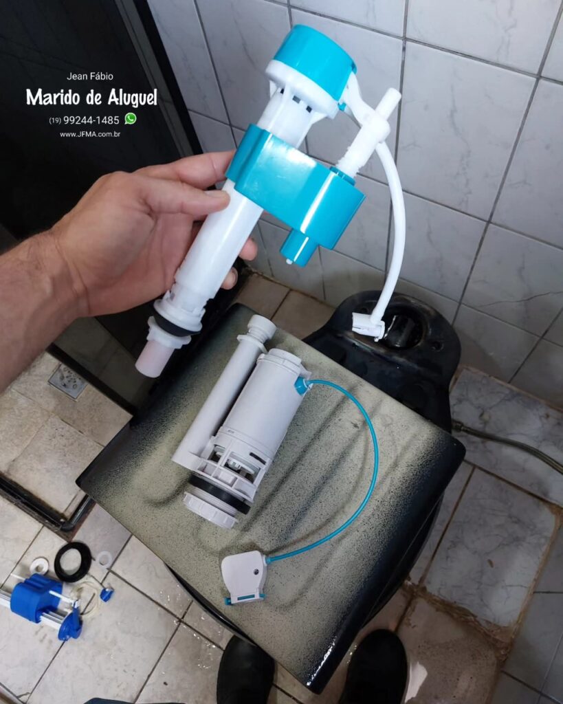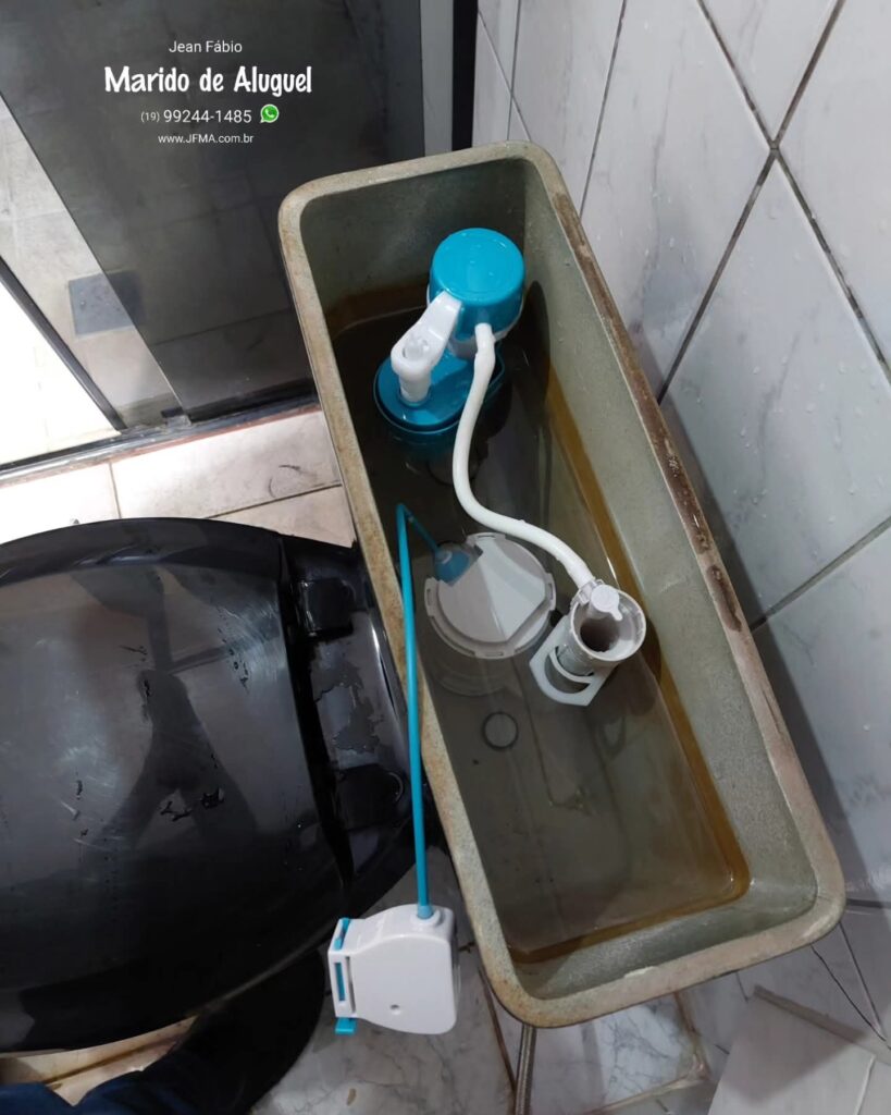 Removi o mecanismo antigo, instalei o kit novo, fiz todos os ajustes necessários, regulei o nível da água e realizei testes completos para garantir que não houvesse mais nenhum vazamento.