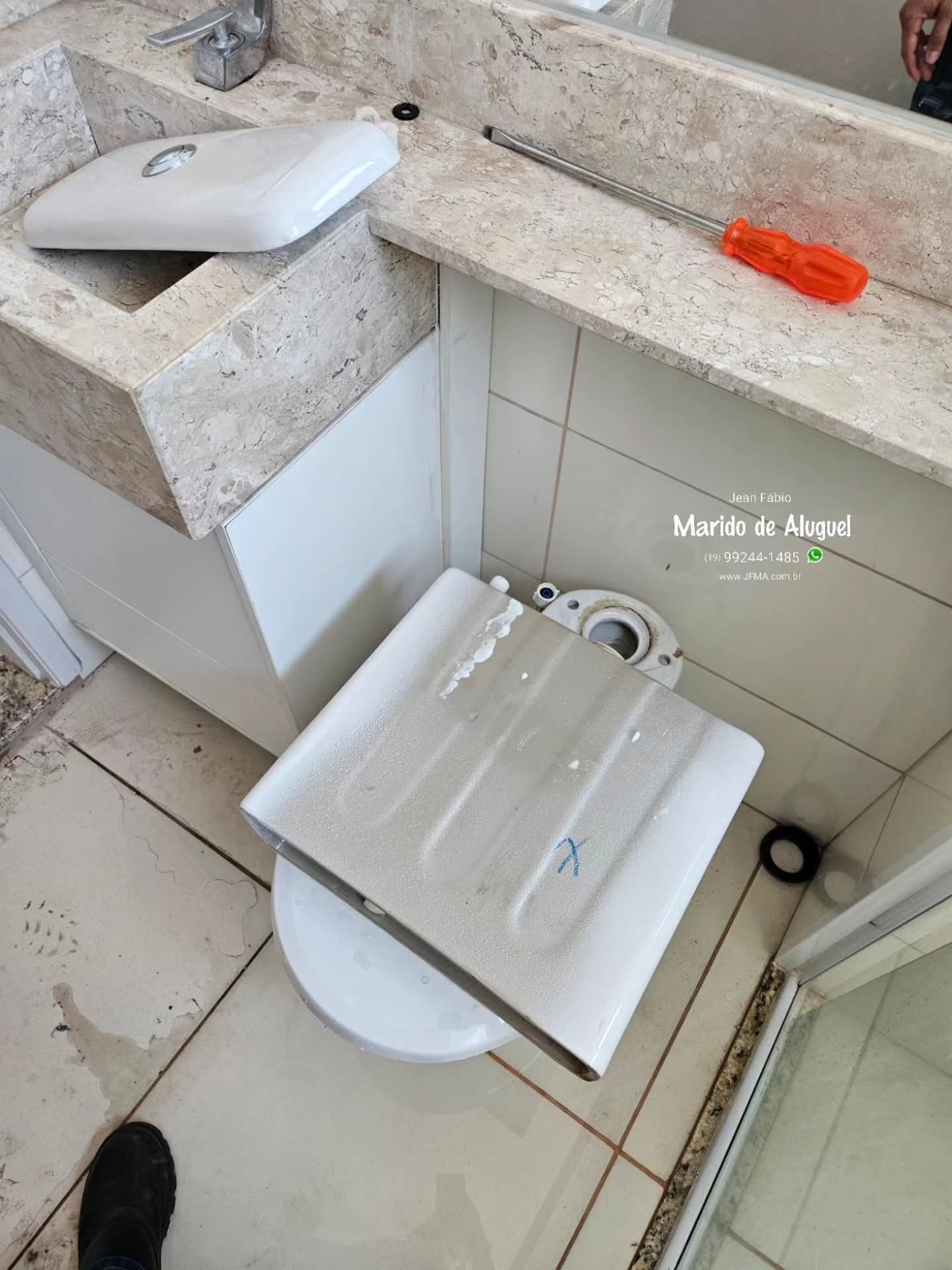 O cliente estava com problema na descarga, que não estava funcionando corretamente. Então fiz a desmontagem da caixa acoplada, removi todo o mecanismo antigo e fiz a substituição por um conjunto novo.