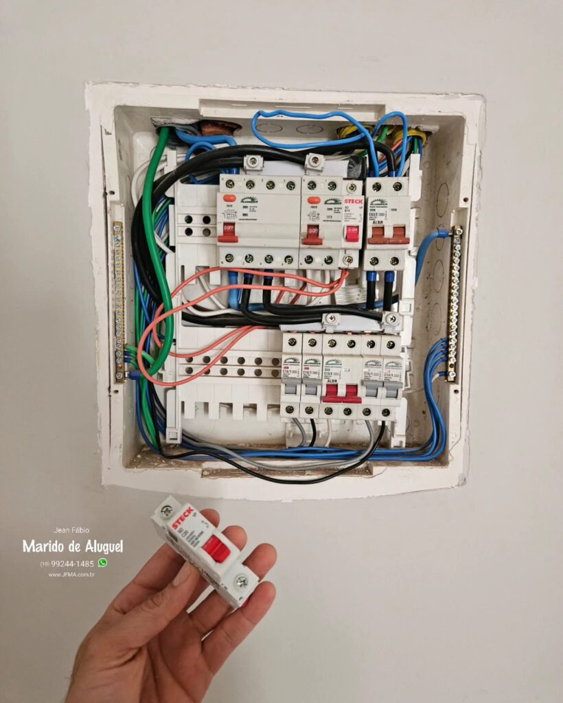 A cliente entrou em contato e relatou que o disjuntor sempre desarmava quando ela ligava o micro-ondas. Ao verificar o quadro, identifiquei que a tomada destinada ao aparelho estava ligada a um disjuntor de 10A, insuficiente para a carga do micro-ondas, que exige tomada e proteção de 20A por conta do alto consumo e do pino mais grosso.