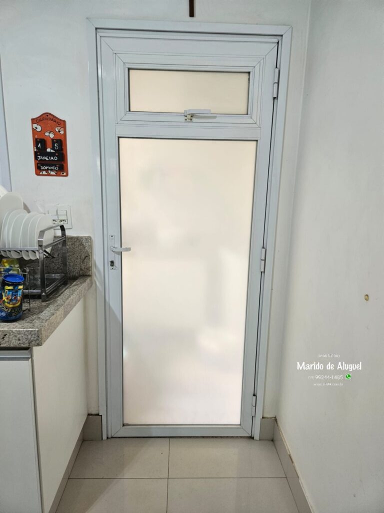 Aproveitando o serviço, a cliente também me mostrou a porta da cozinha, que é de alumínio, onde a fechadura estava frouxa. Esse é um problema bem comum, já que com o tempo os parafusos acabam espanando e perdem a fixação.