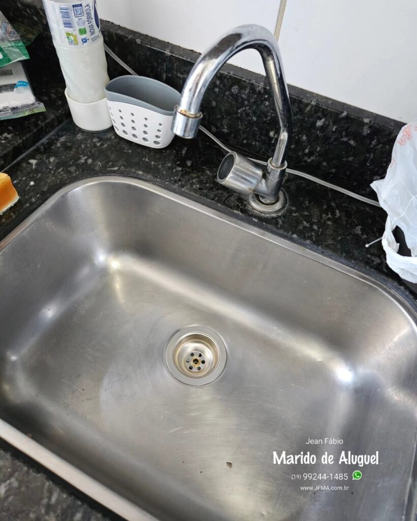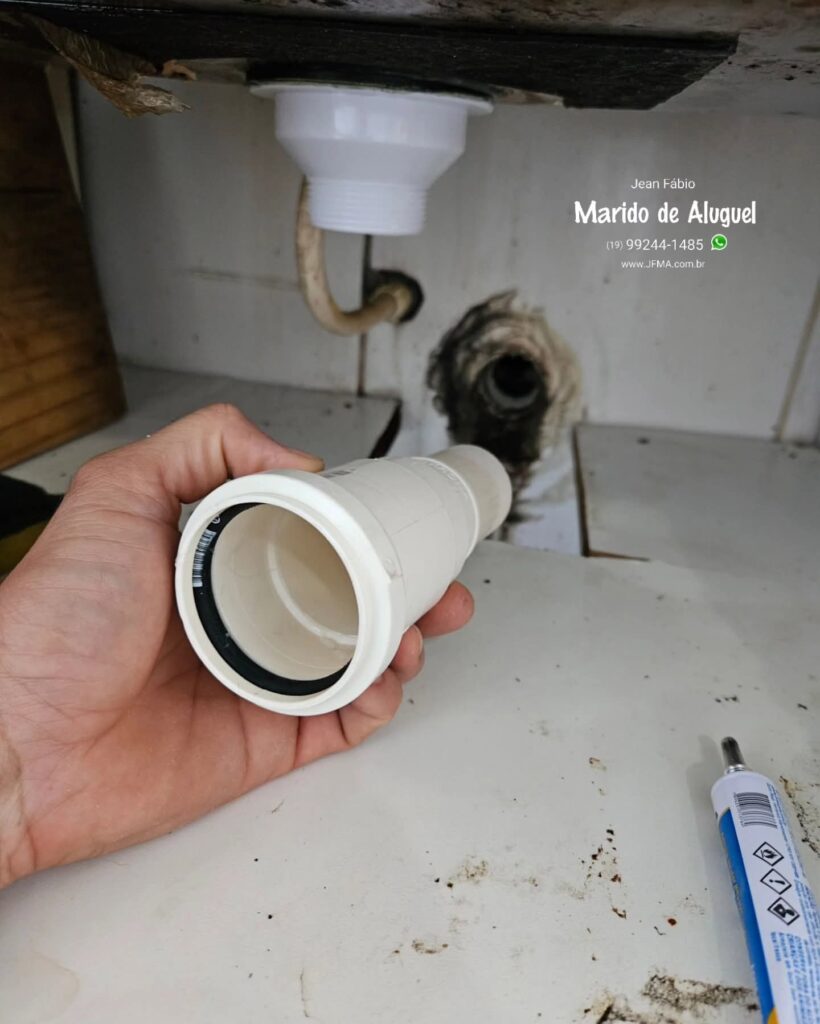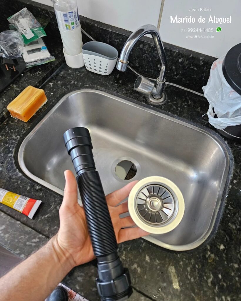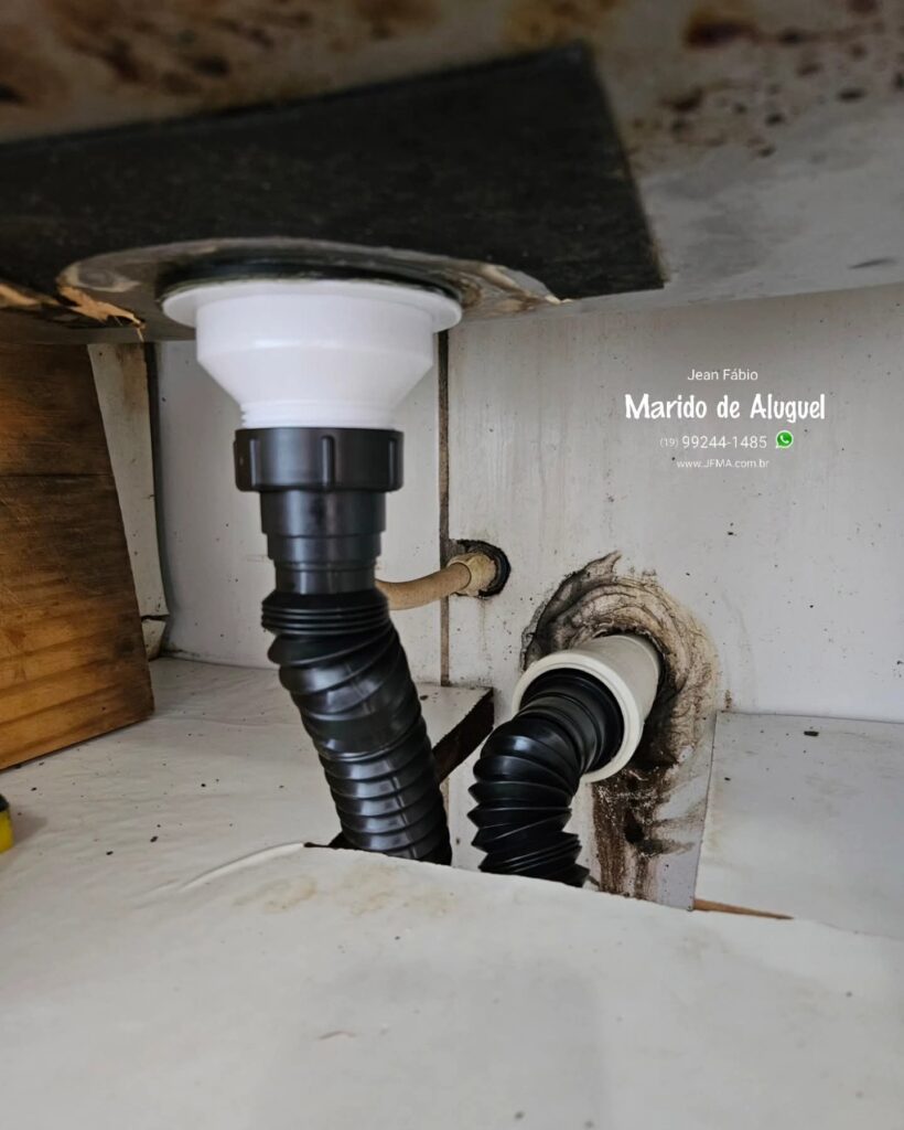 Com isso, o sifão novo entrou alinhado, com vedação perfeita e sem risco de vazamentos. Finalizei ajustando tudo, testei e deixei a pia funcionando sem nenhum problema.