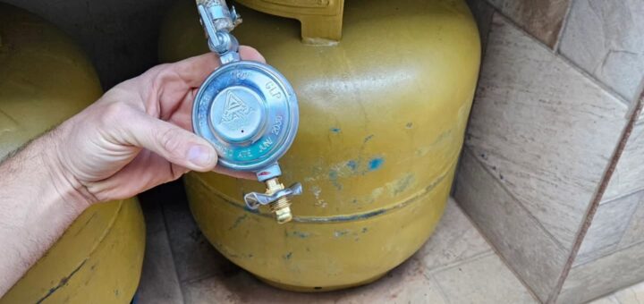 Nessa casa, a cliente pediu pra trocar a mangueira do fogão, que era de borracha e já estava vencida.Os botijões ficam do lado de fora da casa, então a mangueira precisa passar por um...
