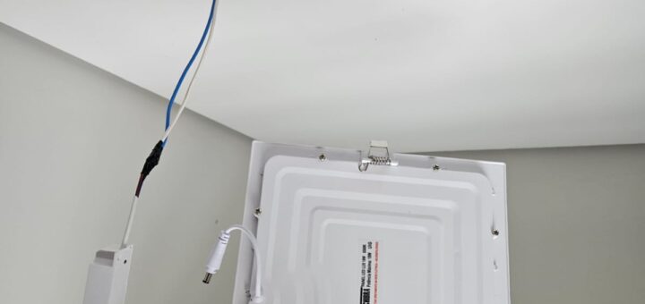 Aqui eu fiz a instalação desse plafond de LED, mas não é um modelo comum. Normalmente o pessoal instala plafonds de 18W ou 25W, que são menores e mais leves. Esse aqui já é...