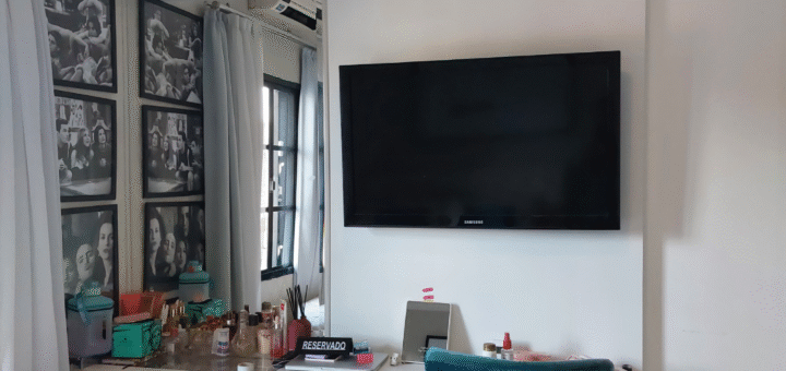 Instalação de TV no suporte articulado.