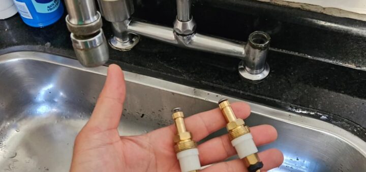 Fui chamado para realizar a troca dos reparos de uma torneira misturadora, que utiliza água da rua e água da caixa. Os dois registros estavam espanados, o que comprometia o funcionamento e causava dificuldade...