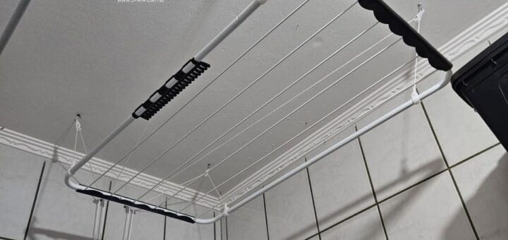 Nessa lavanderia a cliente tinha dois varais de teto daqueles que descem totalmente para facilitar na hora de estender roupa. Um deles já estava completamente detonado, sem condição de conserto. Avaliei a estrutura, vi...