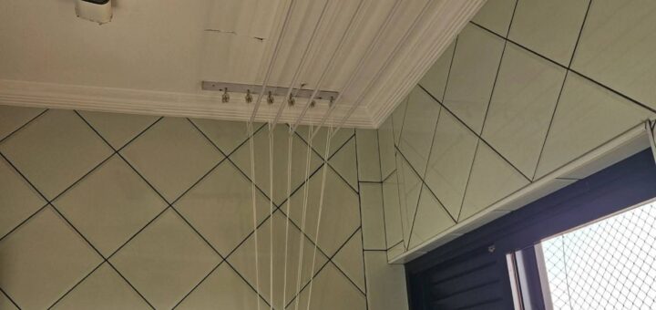 Esse varal de teto estava há tempos sem uso, pois as cordas já estavam gastas e duas varetas quebradas impediam o funcionamento correto.Fiz a substituição completa das cordas e coloquei novamente as varetas, garantindo...